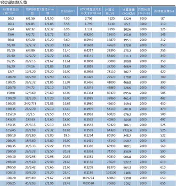 LGJ JL/G1A/JL/G2A/JL/G1B/JL/G2B/JL/G3A 鋼芯鋁絞線